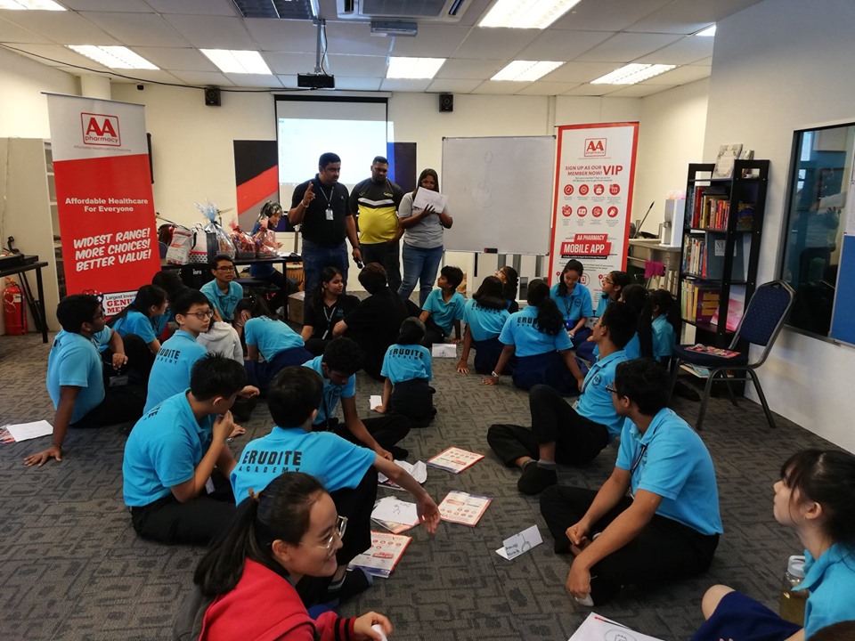 Our pharmacists at AA Pharmacy have given talks to several schools such as SJKC Subang, SJKC Chen Moh and Erudite Academy. The objectives of these school talks were to give basic exposure to pharmacist’s role in the community and also to educate students on proper medicine storage.